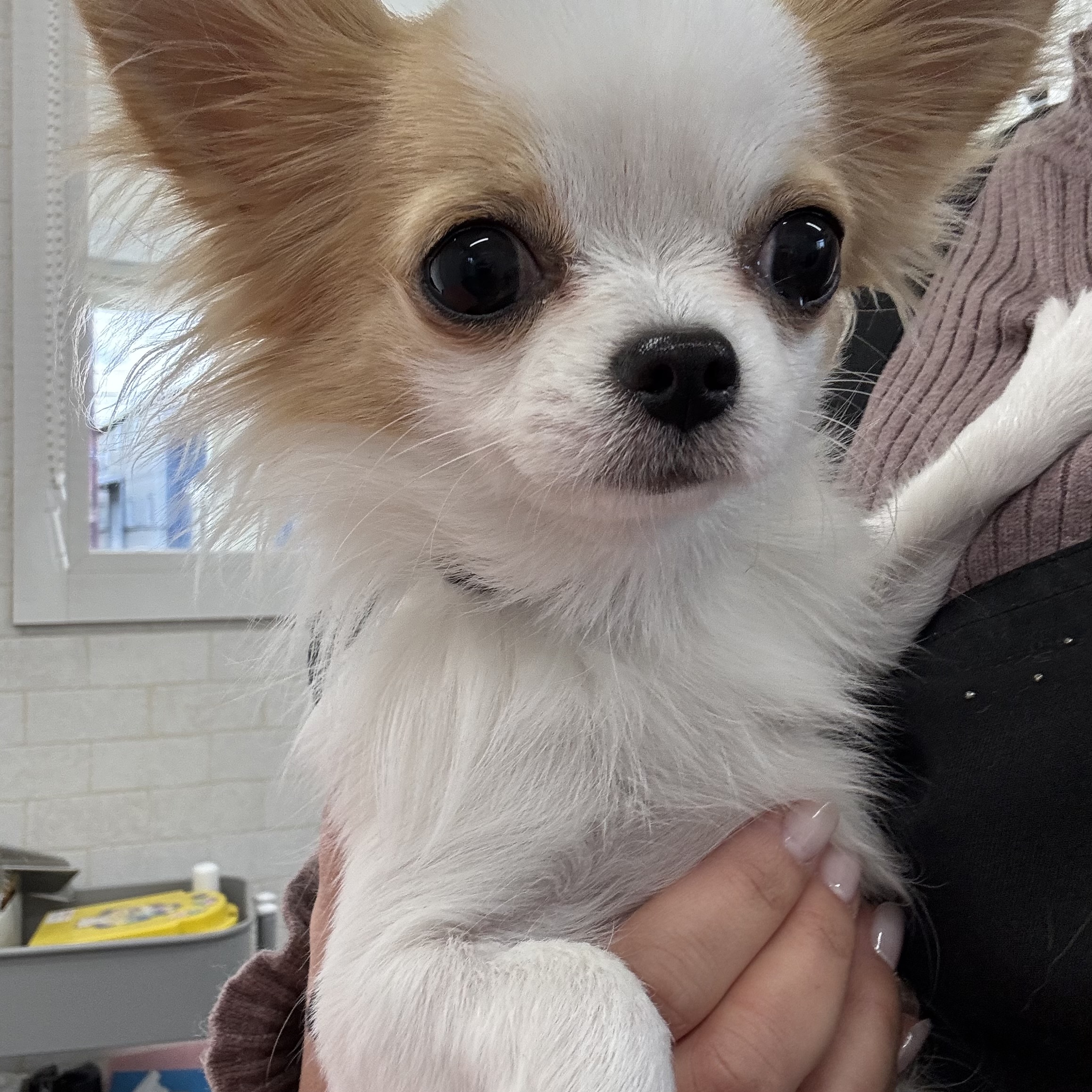 はじめましてのチワワちゃん💖 最初は少し緊張気味でしたが、最後はしっぽふりふりで慣れてくれた様子でした😊 トリミングもとっても上手でした✨️✨️ ご来店ありがとうございました🌷